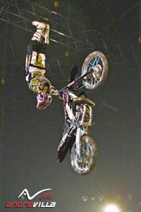Um dem Publikum zu zeigen, was man sonst noch alles mit MX-Maschinen anstellen kann, gab es dann den Whip-Contest, der dieses Mal nicht im Team, sondern als Einzelwertung in einer Jam-Session ausgefahren wurde. Dort traten bis auf Martin Koren (der wegen seines schon mal gebrochenen Rückens kein zusätzliches Risiko eingehen wollte) alle Finalteilnehmer gegeneinander an. Das Starterfeld setzte sich aus Massimo Bianconcini, Alvaro dal Farra, Busty Wolter, Remi Bizouard und Morgan Carlson zusammen. Ca. 10 Minuten lang wiedersprachen die 5 Rider wieder einmal allen Gesetzen der Schwerkraft, wobei immer der jeweils "schlechteste" von den Judges aus der Jam gezogen wurde. |